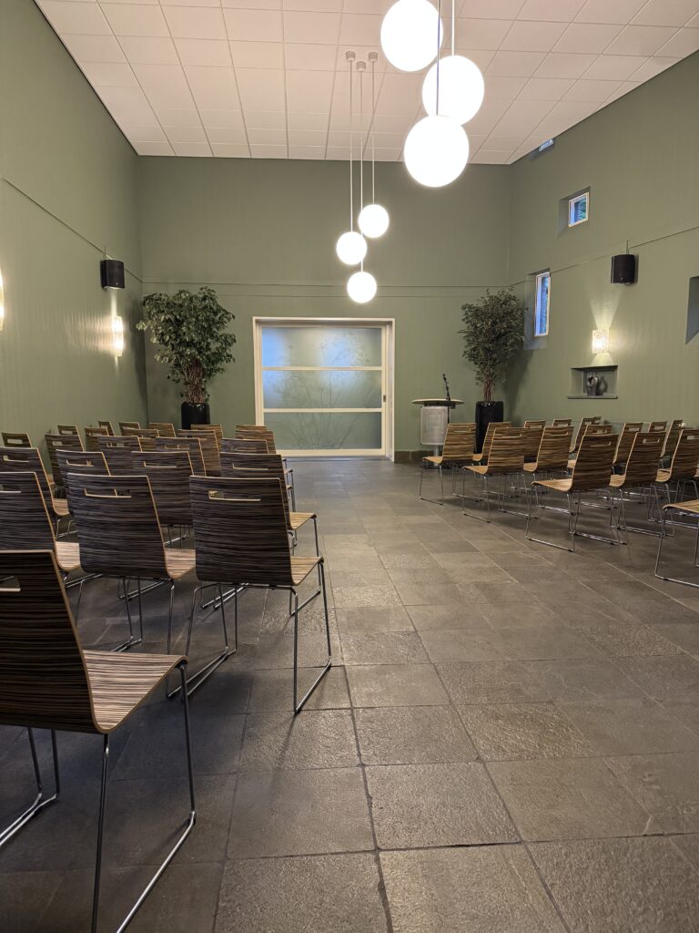 Vanaf 16 december is de aula weer klaar om gebruikt te worden voor het opbaren, rouwdiensten en condoleances. Wij hopen dat de aula nu weer aantrekkelijker is geworden om te gebruiken bij de uitvaarten.